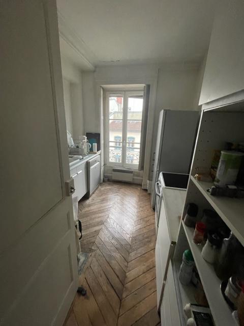 Le bien comprend également une salle de bains avec baignoire surélevée, ainsi qu'une grande chambre avec placards intégrés offrant une vue calme sur la cour intérieure de l'immeuble.Idéalement situé entre la place Bellecour et la place de la République, cet appartement bénéficie d'un accès immédiat aux commerces et aux transports en commun, notamment les lignes de métro A et D (station Bellecour).