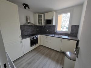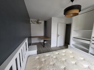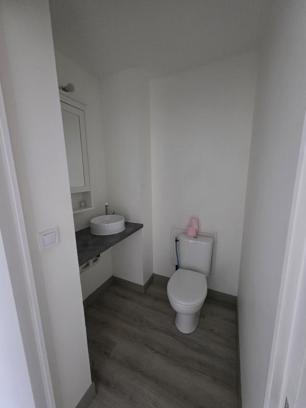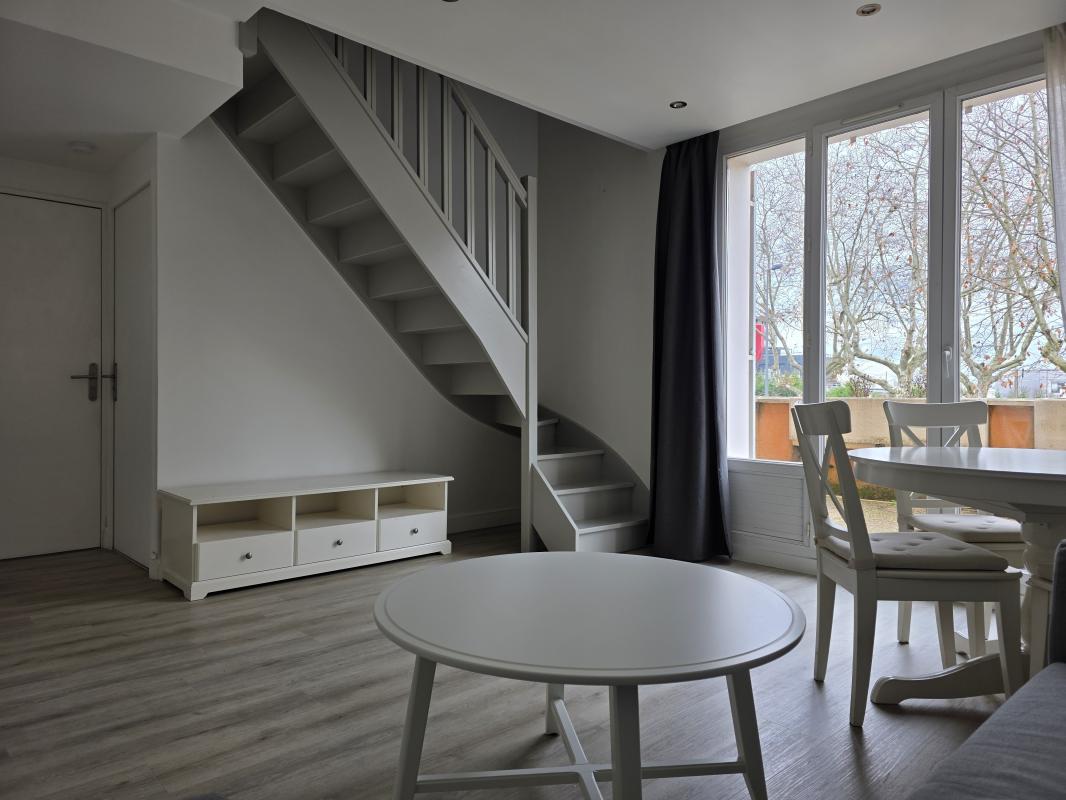 Le logement se compose d'une cuisine séparée, meublée et équipée, ainsi que d'un séjour lumineux ouvrant sur une grande terrasse de 17,57 m2. À l'étage, vous trouverez une chambre avec dressing et coin bureau, une salle d'eau, ainsi que des toilettes séparées.