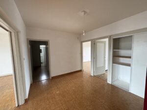 Vous trouverez également une cuisine indépendante, trois chambres d'environ 12 m² chacune, dont deux avec accès à un second balcon, ainsi qu'une buanderie, une salle de bains et des toilettes séparées.Le chauffage et la production d'eau chaude sont assurés par une chaudière collective au gaz.